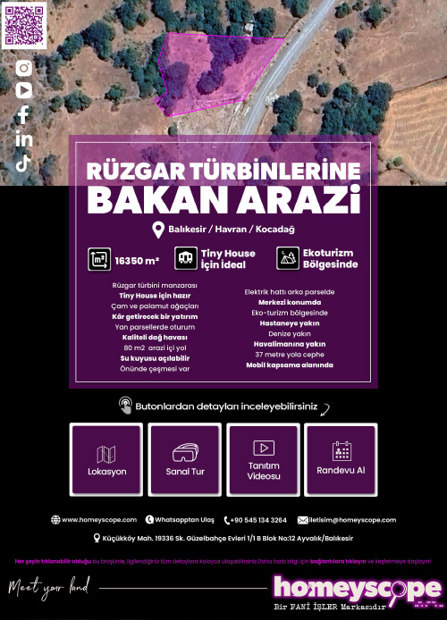 "Homey" ve "Scope" kelimelerinin birleşiminden doğan Homeyscope, dostane ve güvenilir bir rehber gibi, ev arayışında olanları hayal ettikleri mülklerle buluşturur. Homeyscope Kuzey Ege'deki bütün özel emlakları tek çatı altında toplayan dijital bir oluşumdur.